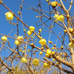 ロウバイは1月から2月に咲き、とても良い甘い香りを放つのが特長です。その甘い香りは、英名で“Winter sweet”「冬の甘い香り」と称されるほどのものです。